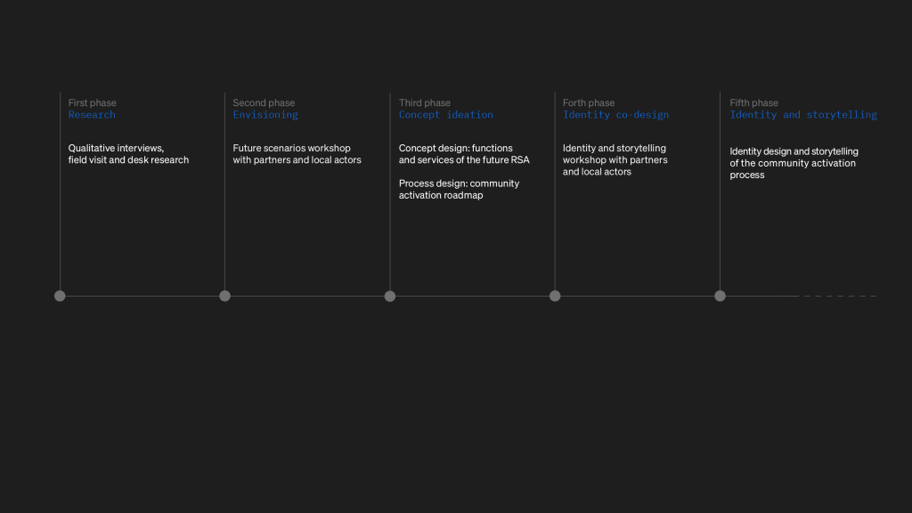 The second phase, currently underway, will lead to the definition of the visual and narrative identity of the relational construction site: the process of building a network of relationships among different local actors aimed at experimenting with temporary governance and activities.